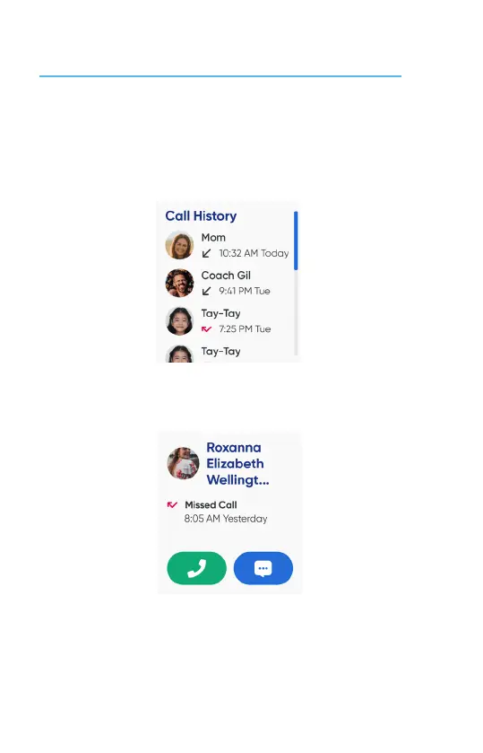 From the watch face, swipe right three mes to enter Call History to check your missed