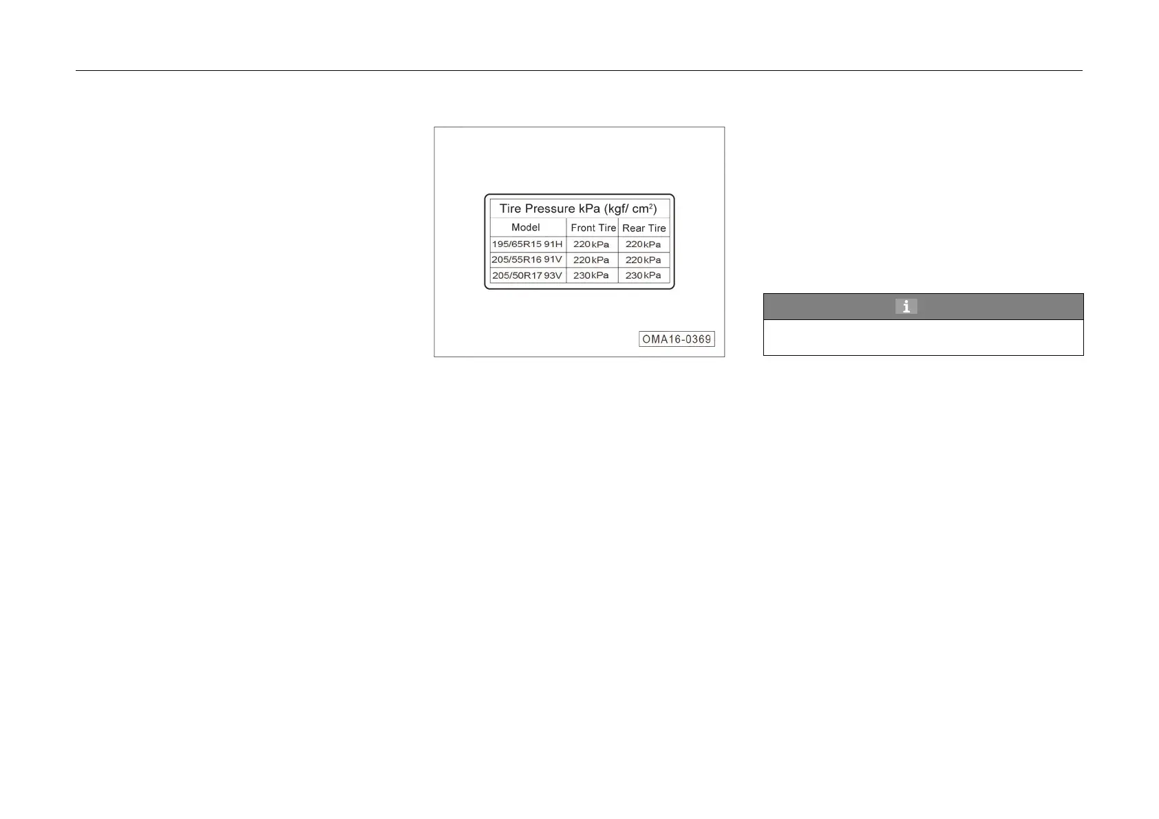 The tire pressure described in this Manual is