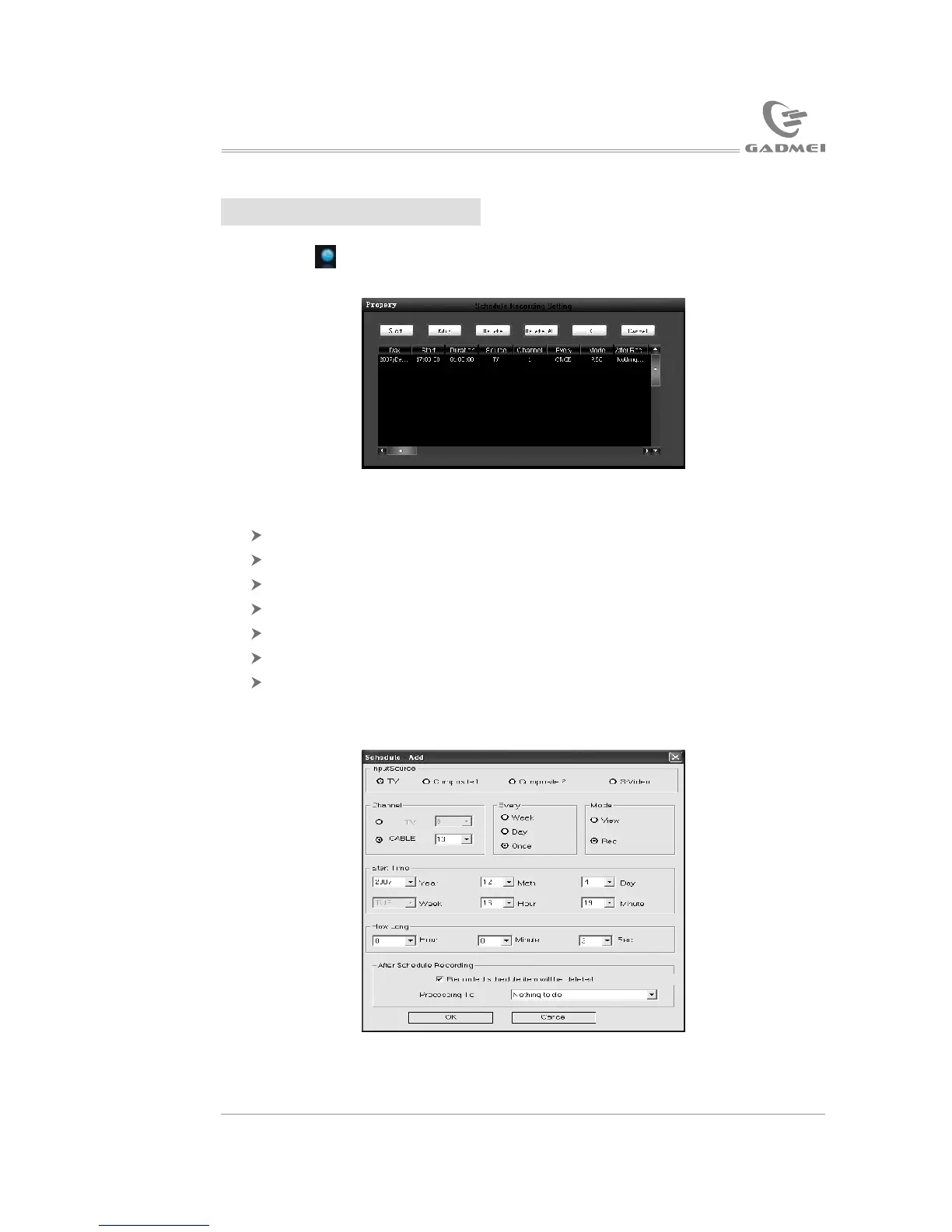 Gadmei UTV240 - Scheduled Recording Setup and Task Configuration