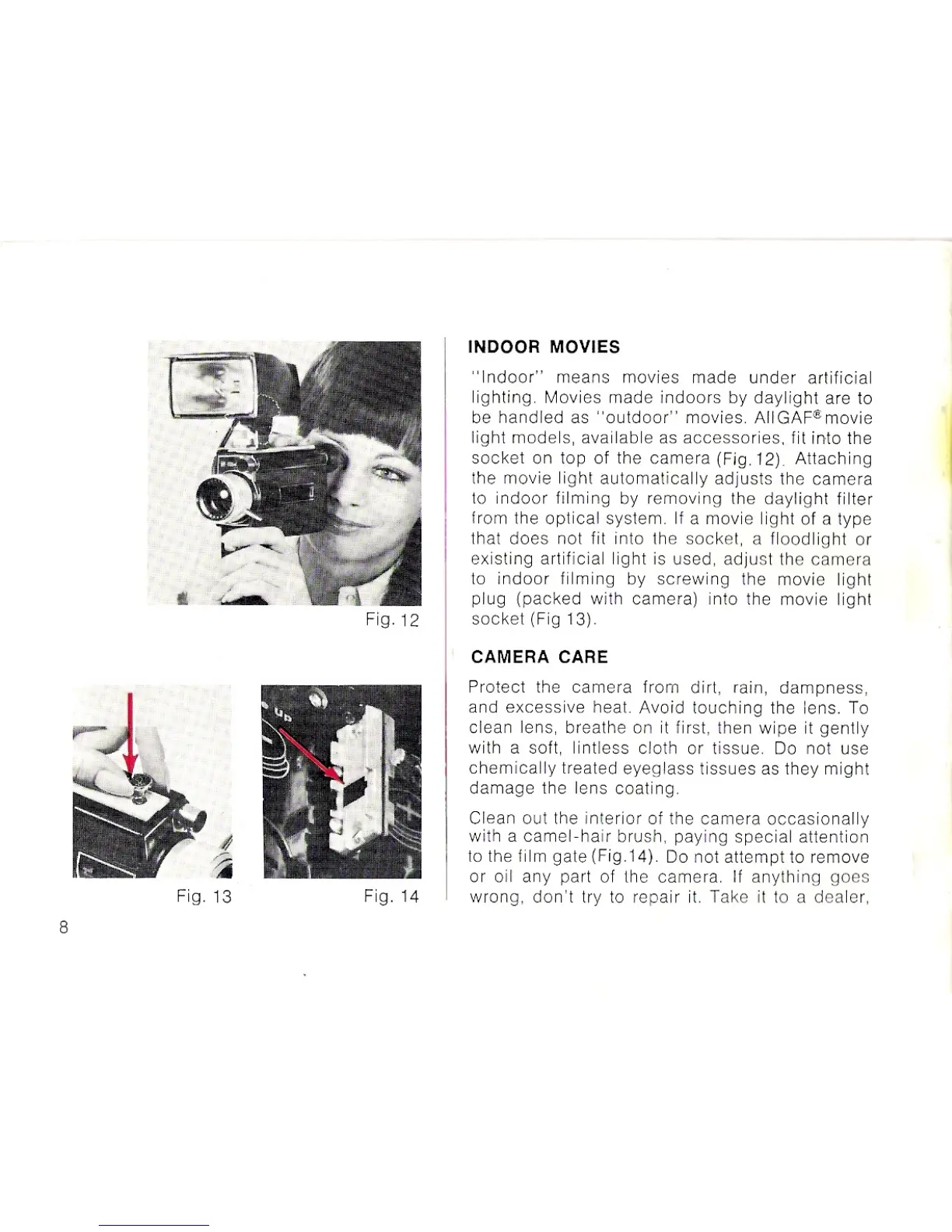 GAF 64R - Indoor Movies; Camera Care and Warranty; Camera Care and Maintenance