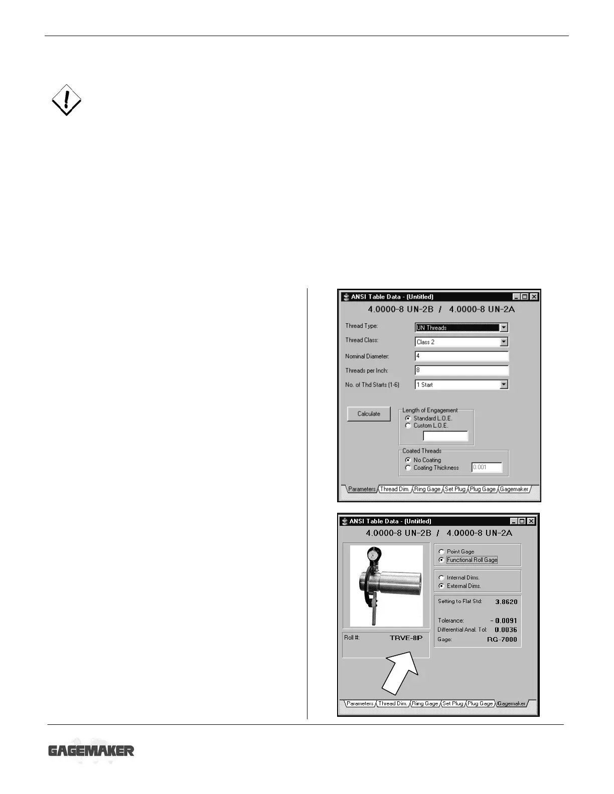 them on the gage. Entering some minimal thread information into the Thread Disk for Windows program