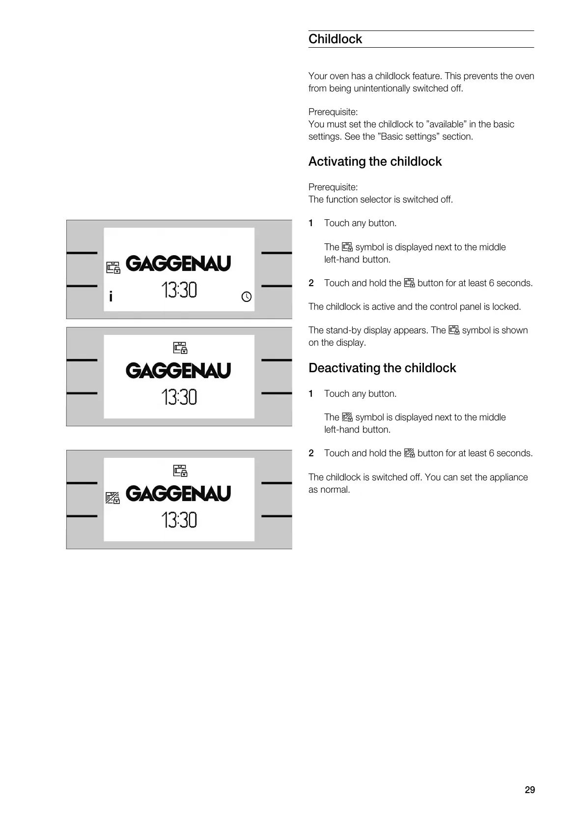 Gaggenau BM 271 - Childlock; Activating the Childlock; Deactivating the Childlock