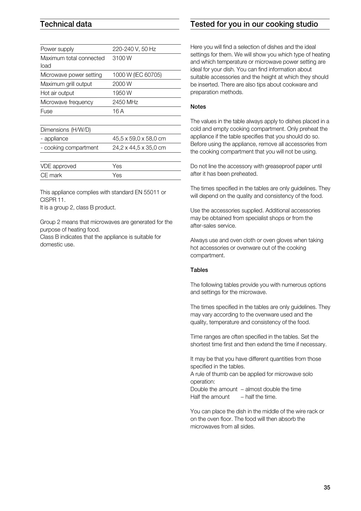 Gaggenau BM 271 - Technical Data; Tested for You in Our Cooking Studio