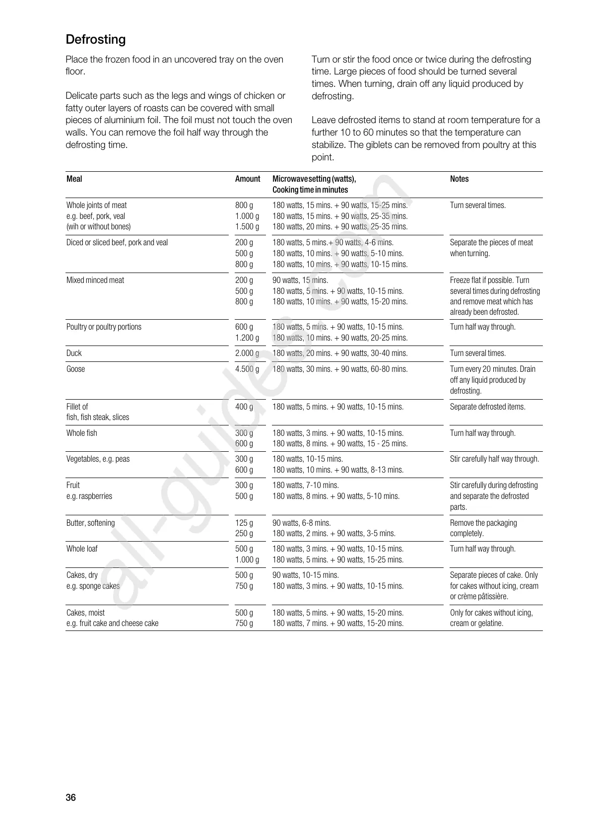 Gaggenau BM 271 - Defrosting
