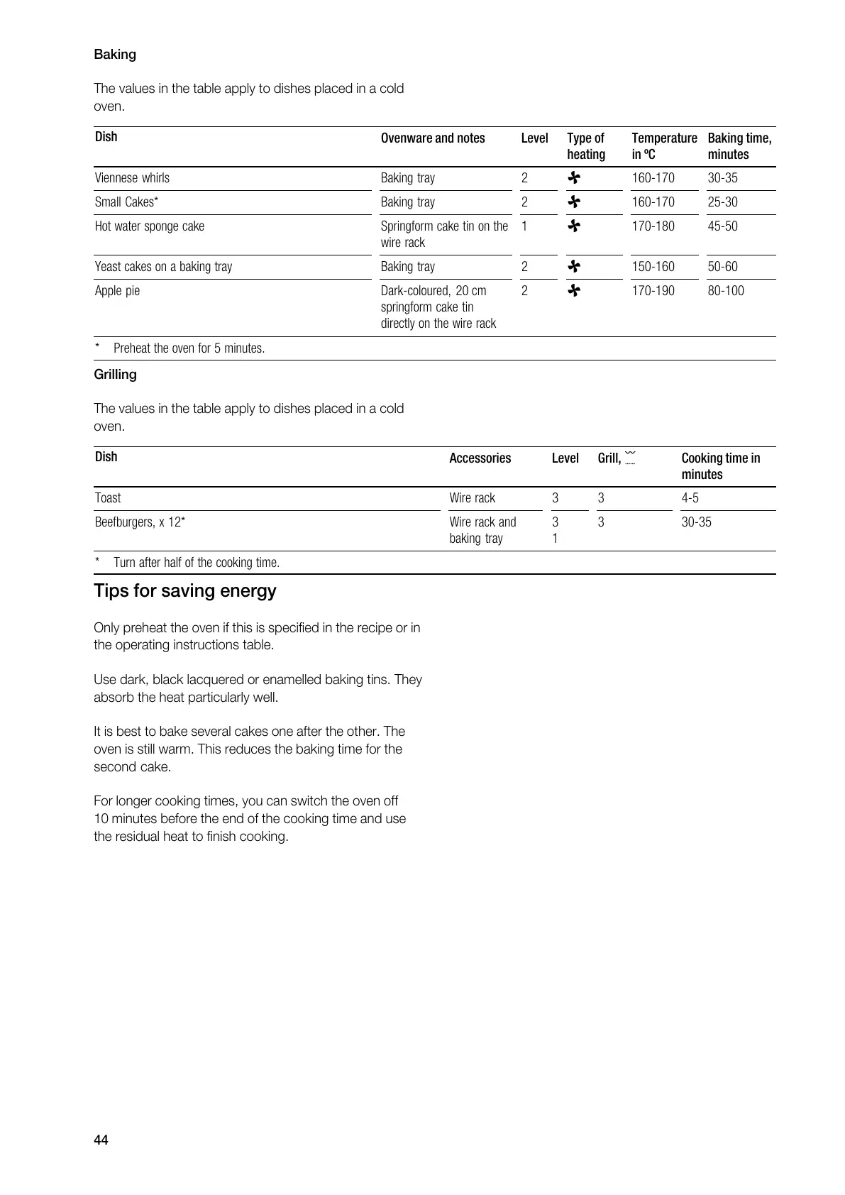 Gaggenau BM 271 - Tips for Saving Energy