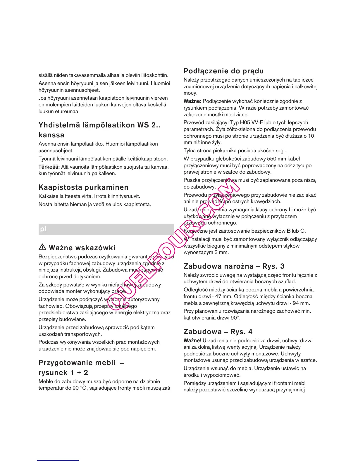 niniejszą instrukcją obsługi. Zabudowa musi zapewnić