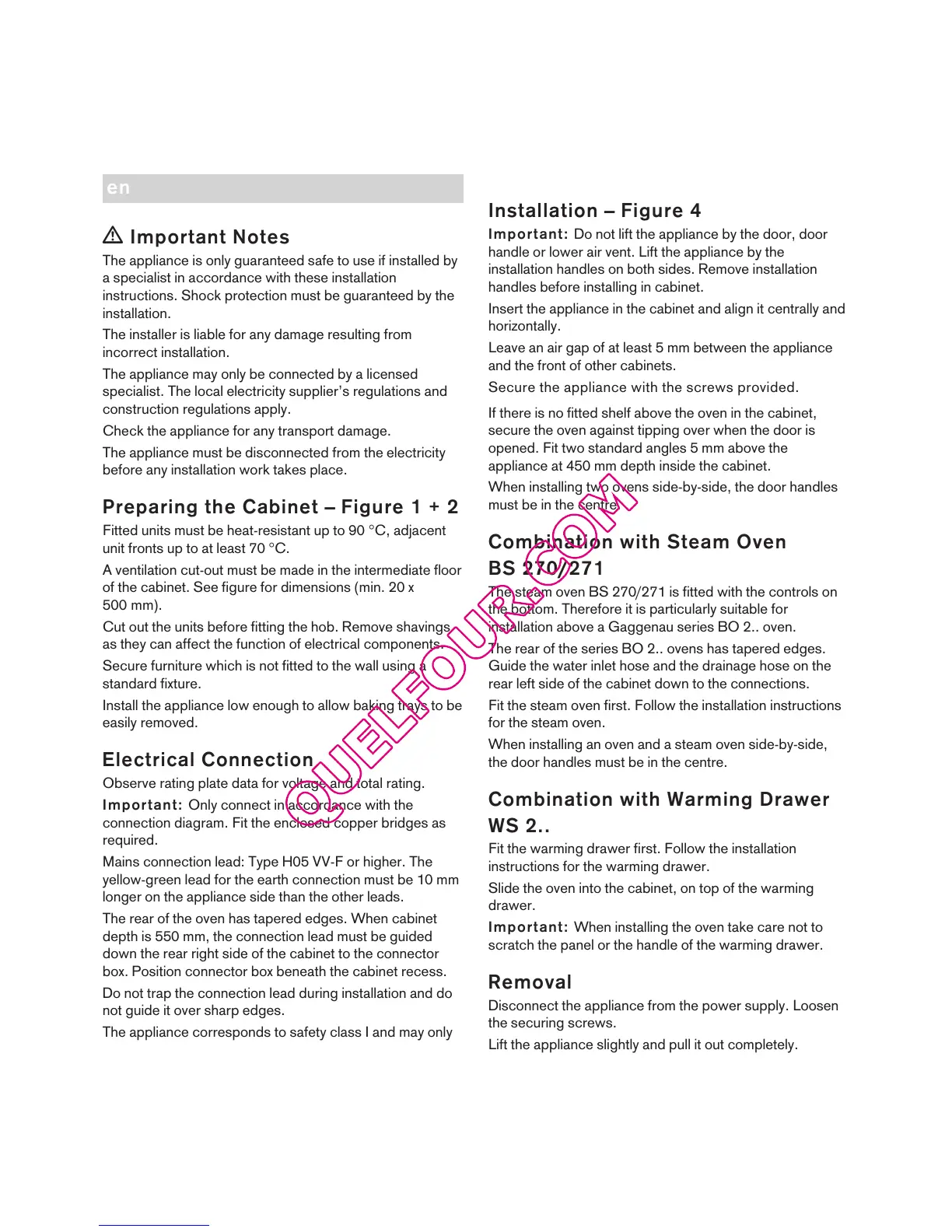 Fitted units must be heat-resistant up to 90 °C, adjacent