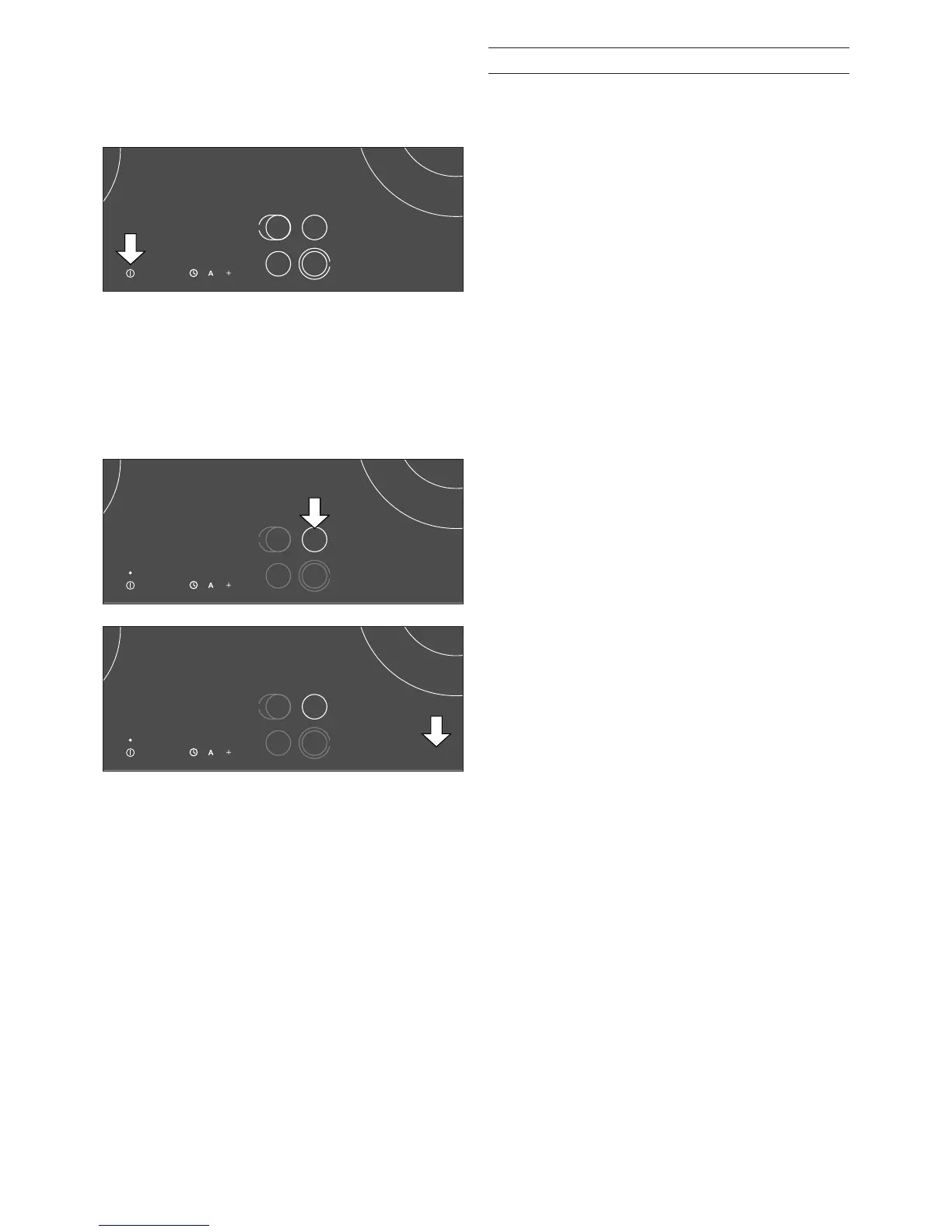 1 Select the required cooking zone by touching