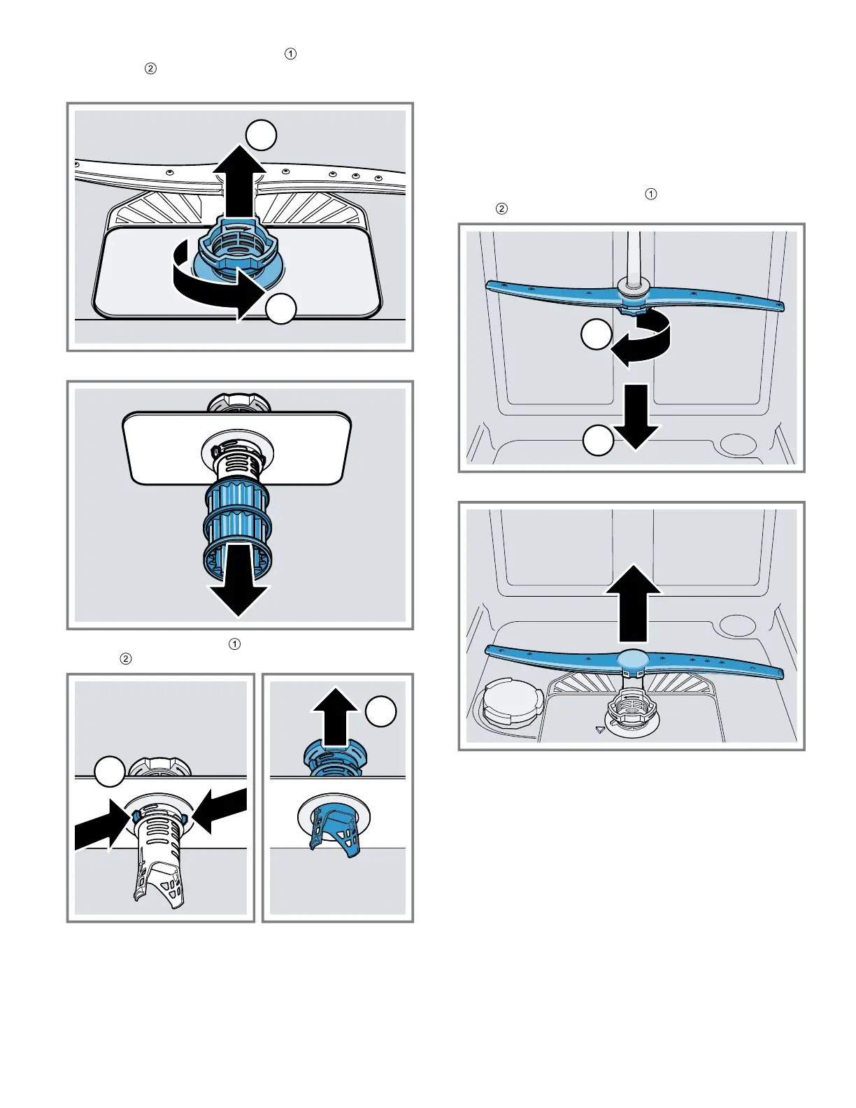 1. Unscrew the upper spray arm and pull down to re-