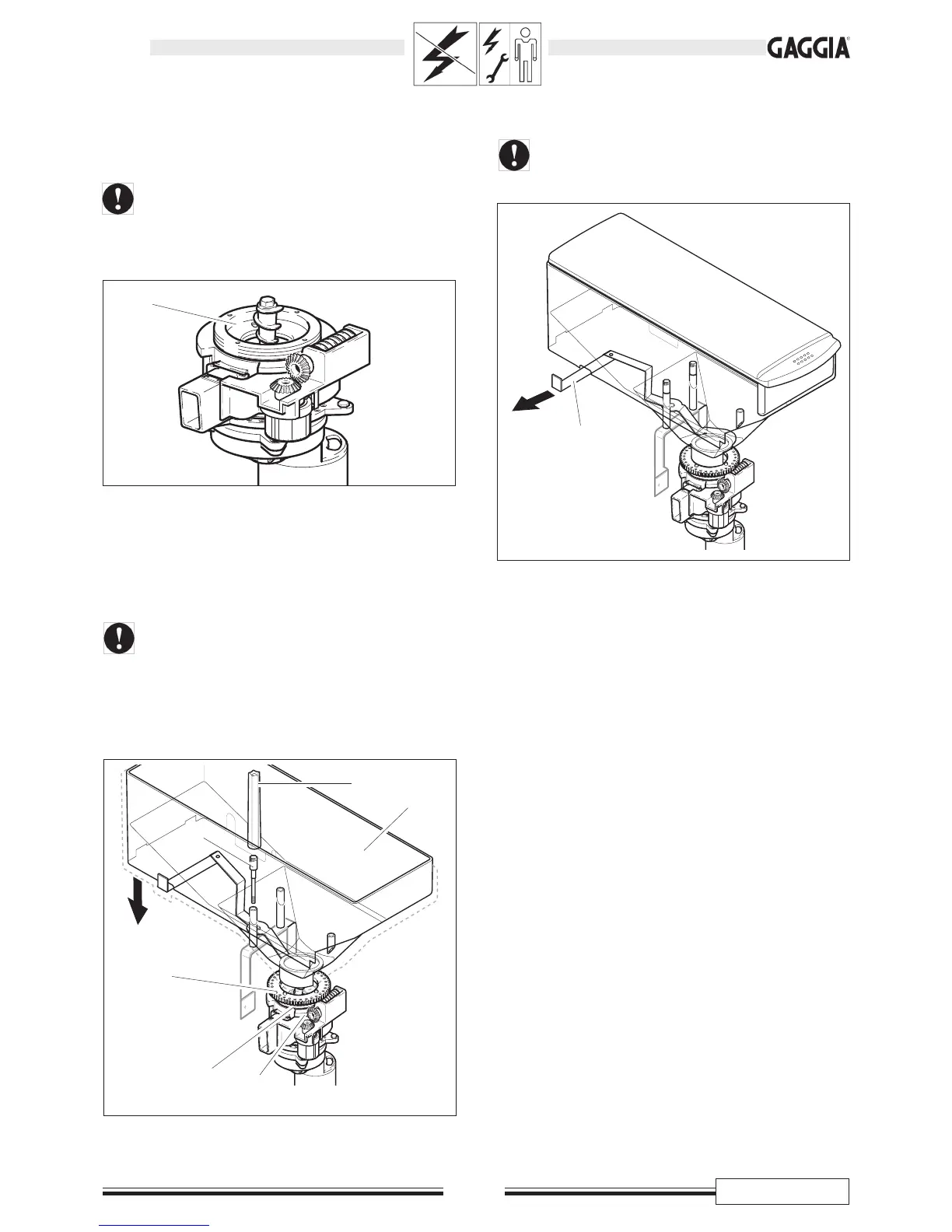 • Das Zahnrad (E) wieder anbringen und die Schrauben (D)