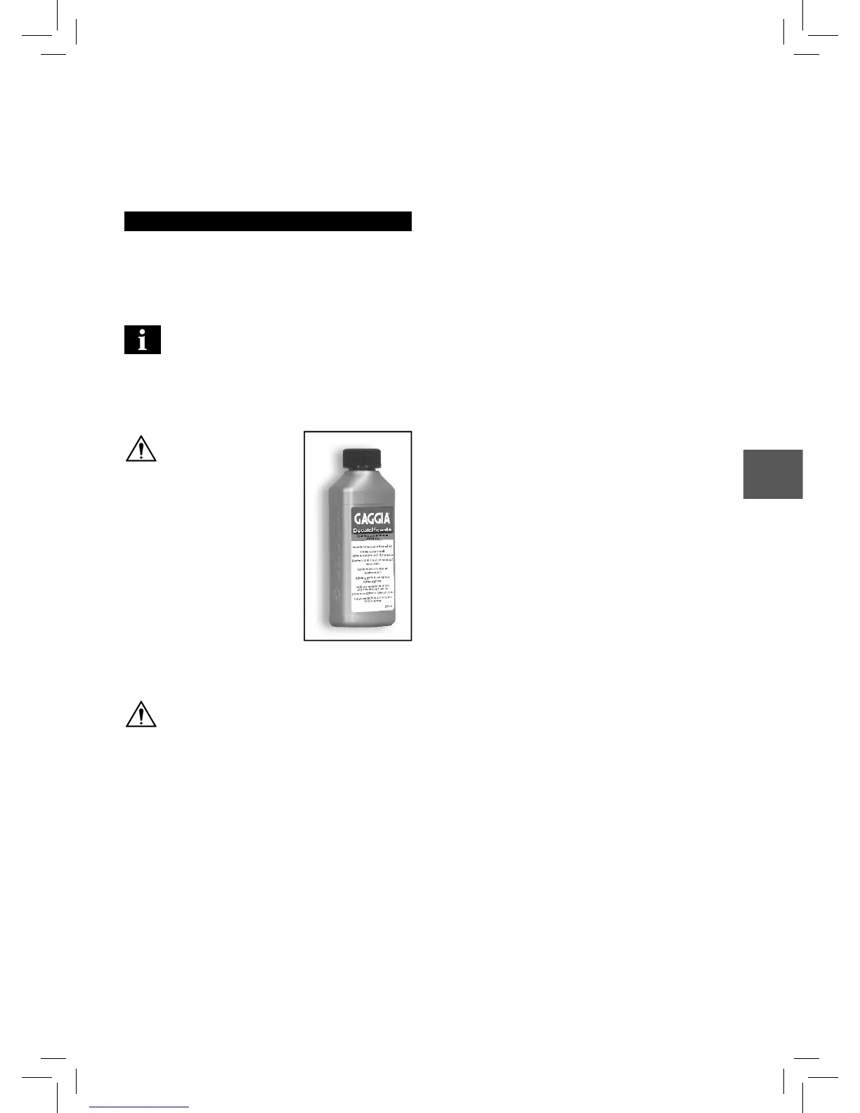 stroomt. Gebruik uitsluitend het ontkalkingsproduct van GAGGIA.