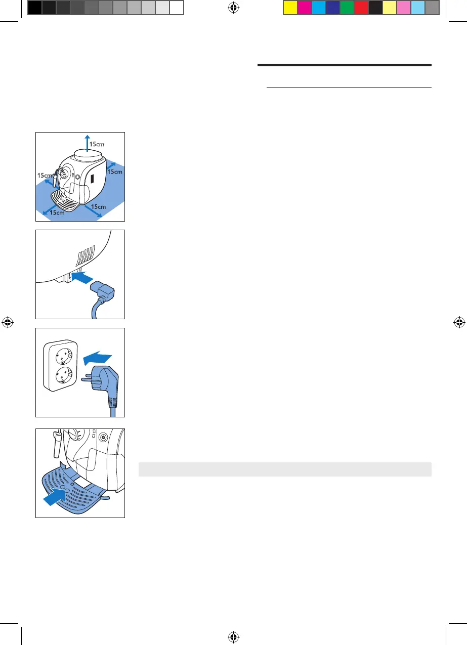 2 Place the machine on a table or worktop away from the tap, the sink and heat