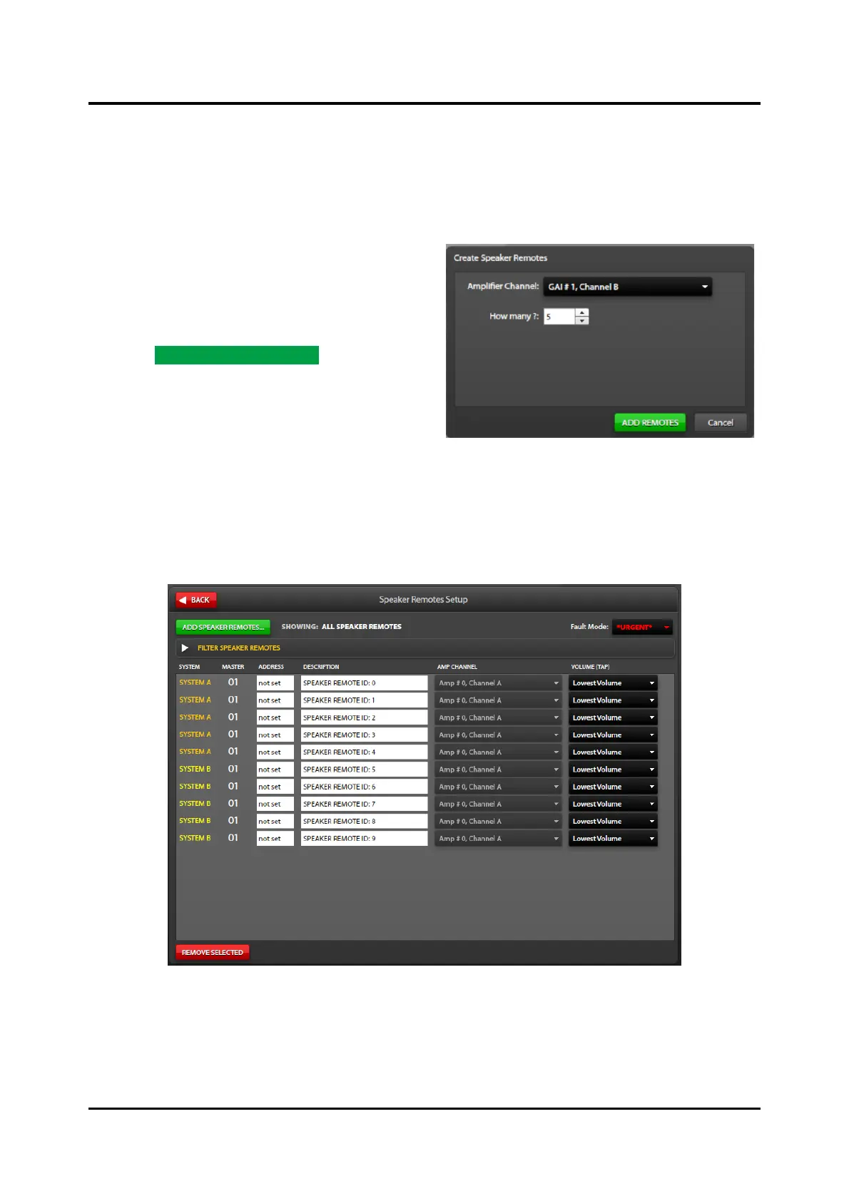 The speaker remotes display in a list format with columns for SYSTEM, SPEAKER MASTER, SPEAKER