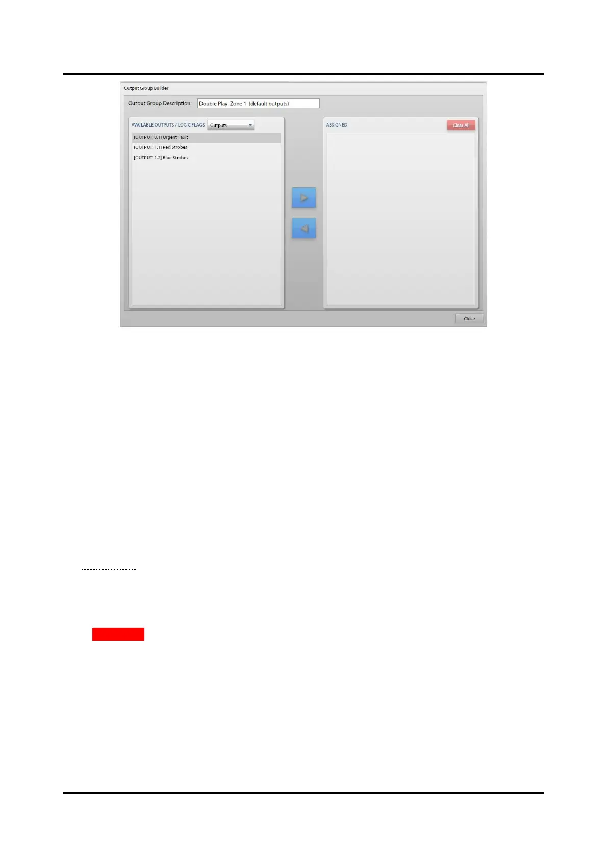 Click CLEAR ALL to move all listed outputs back to their respective available lists.