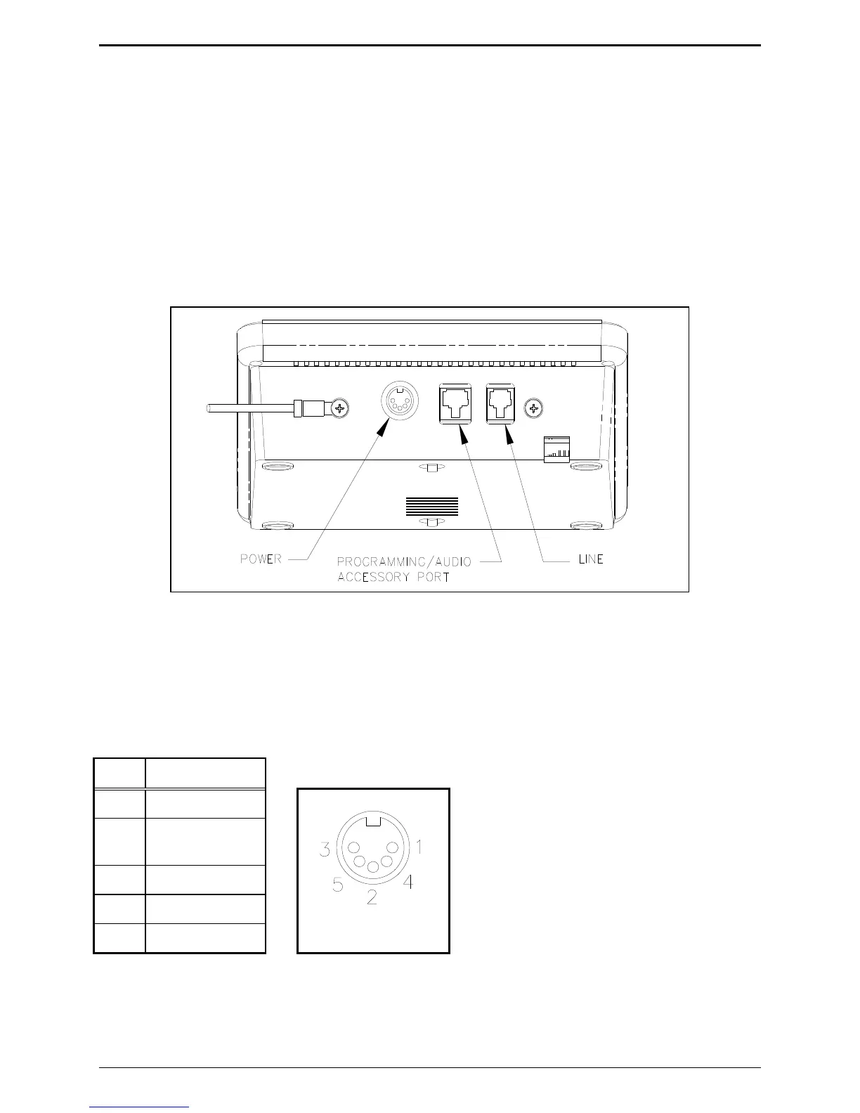range is 10.5 to 15 V dc. The five-pin power connector diagram and pinout are shown below: