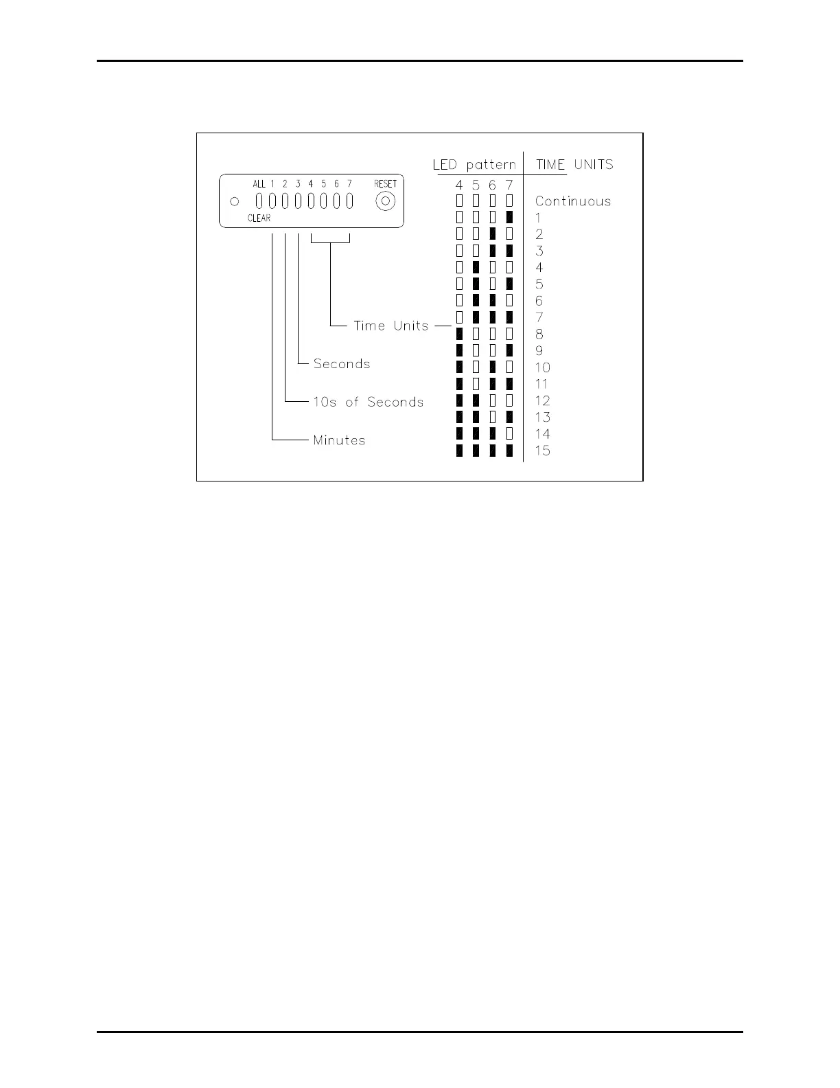 example, if LEDs 5 and 6 are lit, the duration is 6 units.