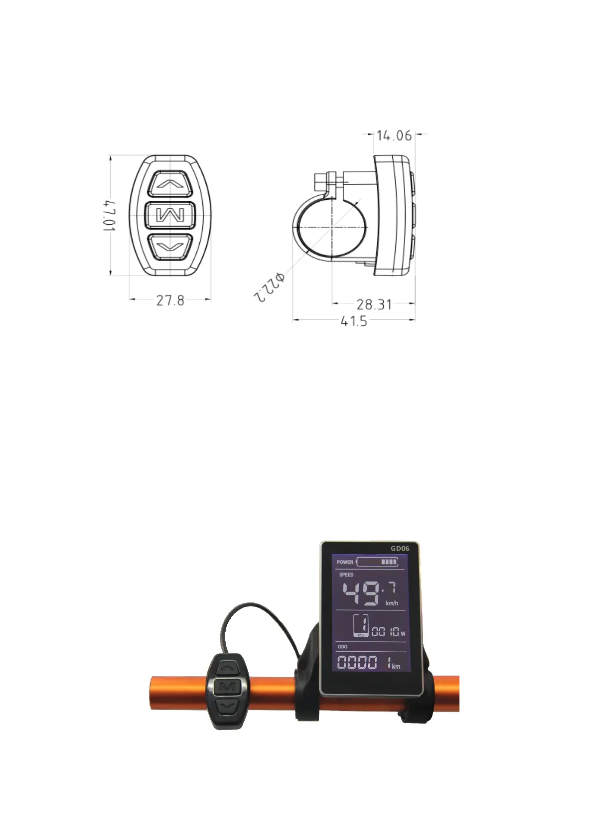 Install the display in the middle of handlebar, then adjust