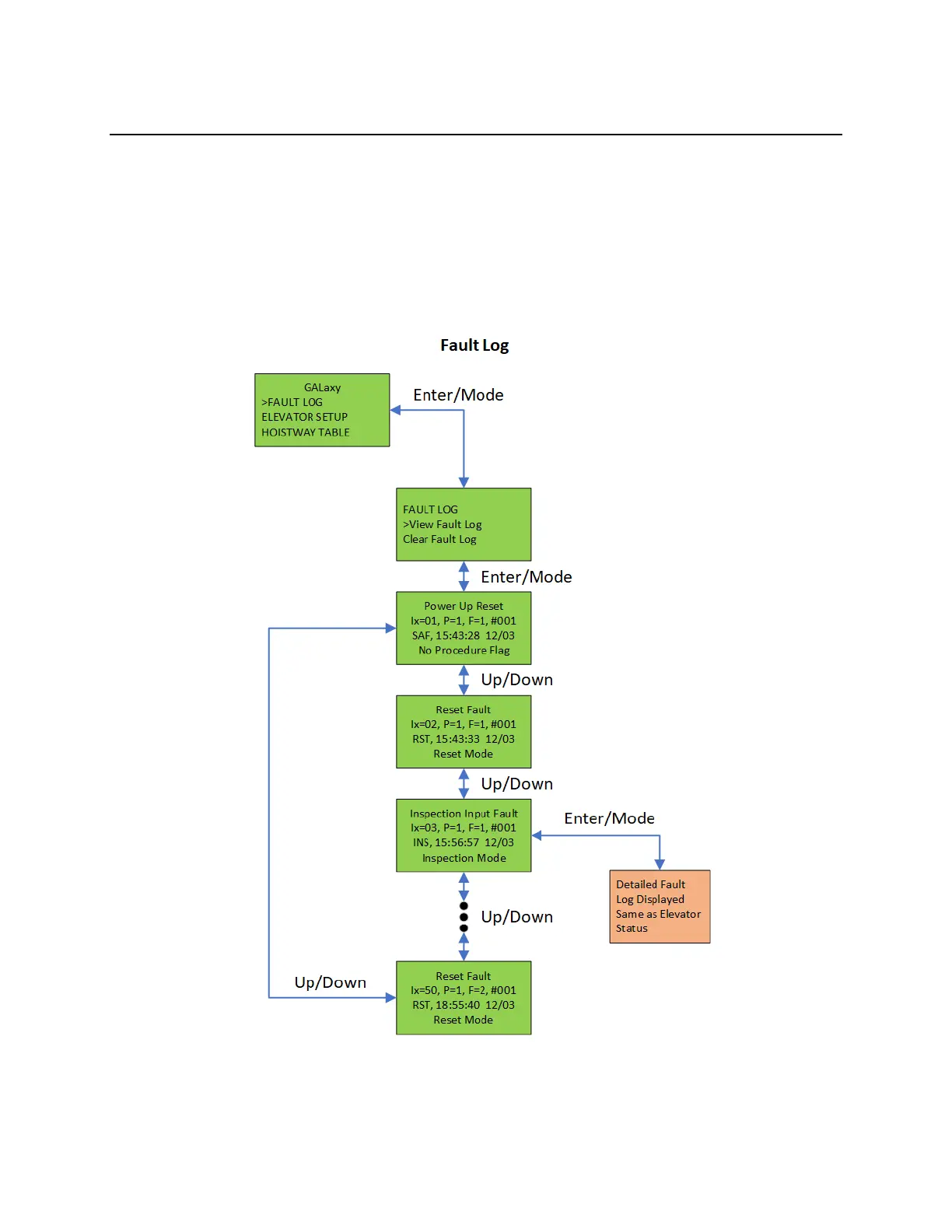 This menu allows the user to view or clear the fault log. The View Fault Log menu displays the fault,