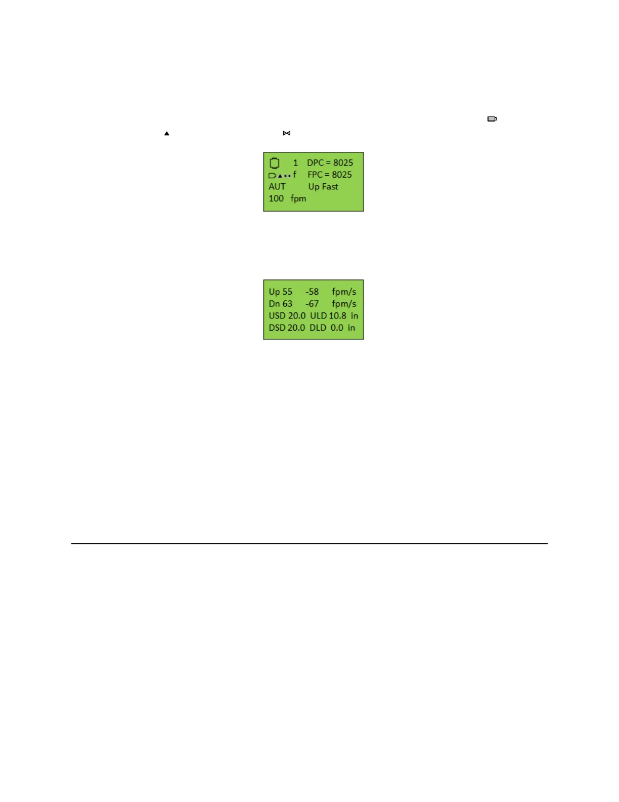 above, the up direction run acceleration rate is 55 fpm/s and the deceleration rate is 58 fpm/s. The