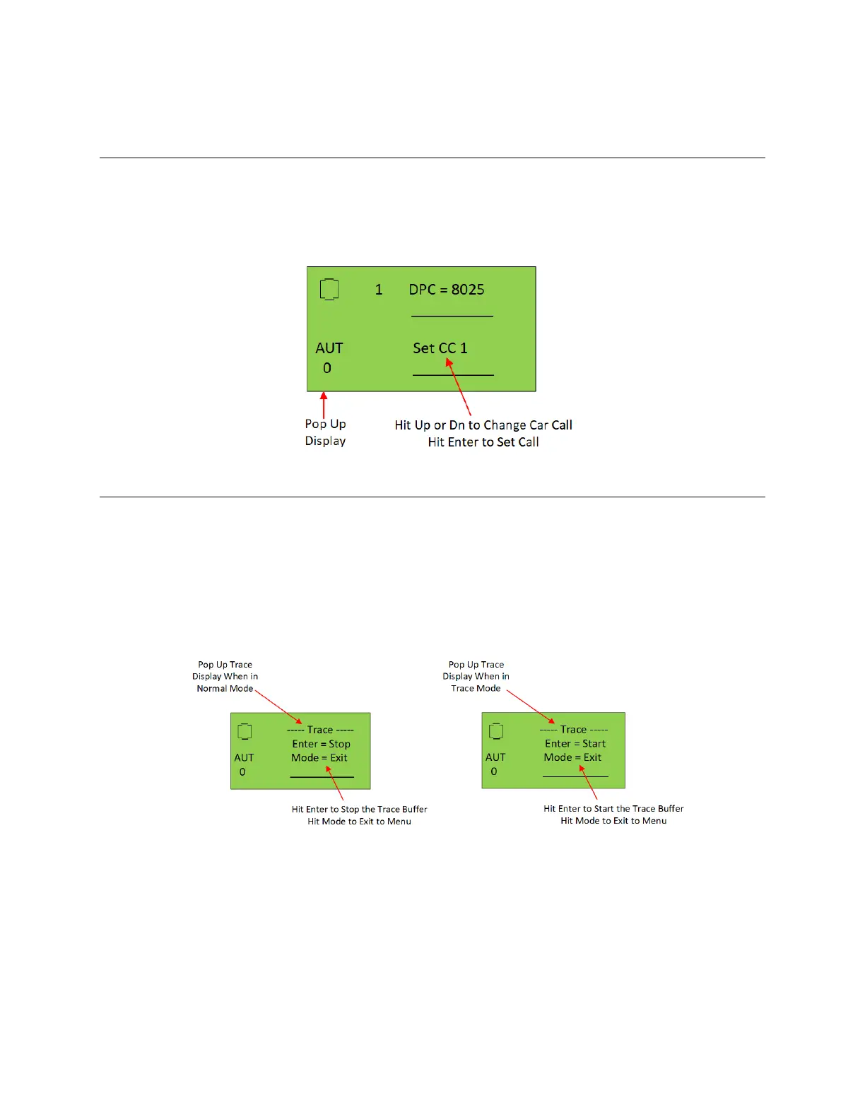 and then press ENTER to stop the trace. After the trace buffer is stopped, the Elevator Status display