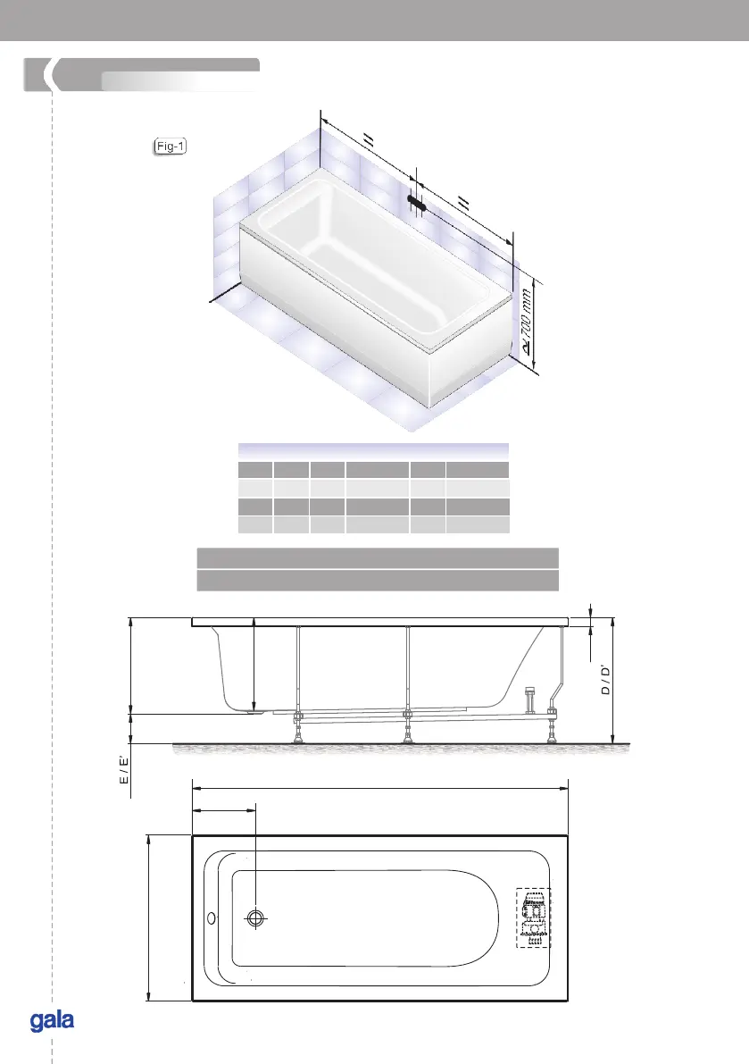 GALA Emma - Acrylic Bathtub Product Information and Dimensions
