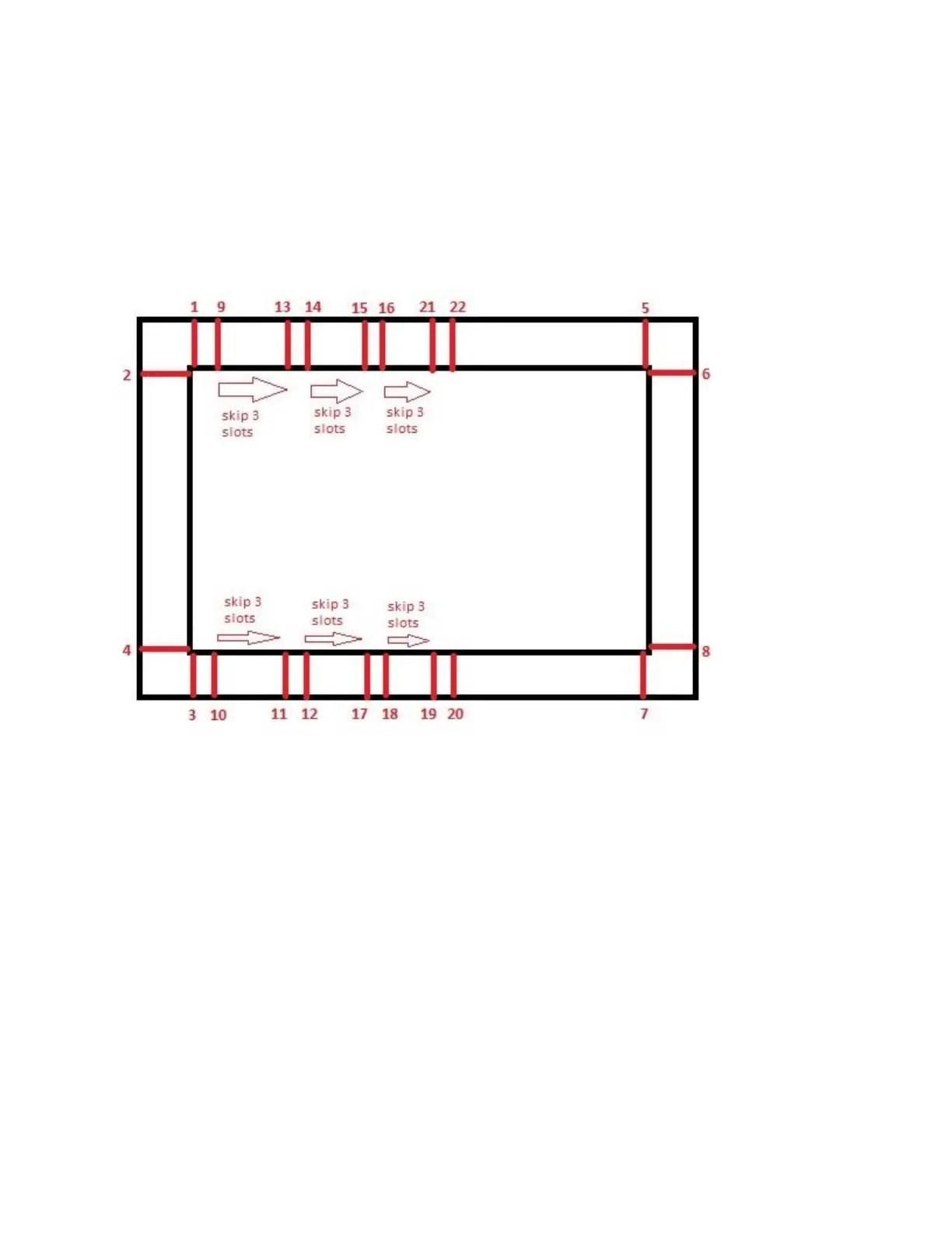 about 3 slots. Go to the opposite side of the trampoline, insert 2 springs, then skip 3 slots. Go to the