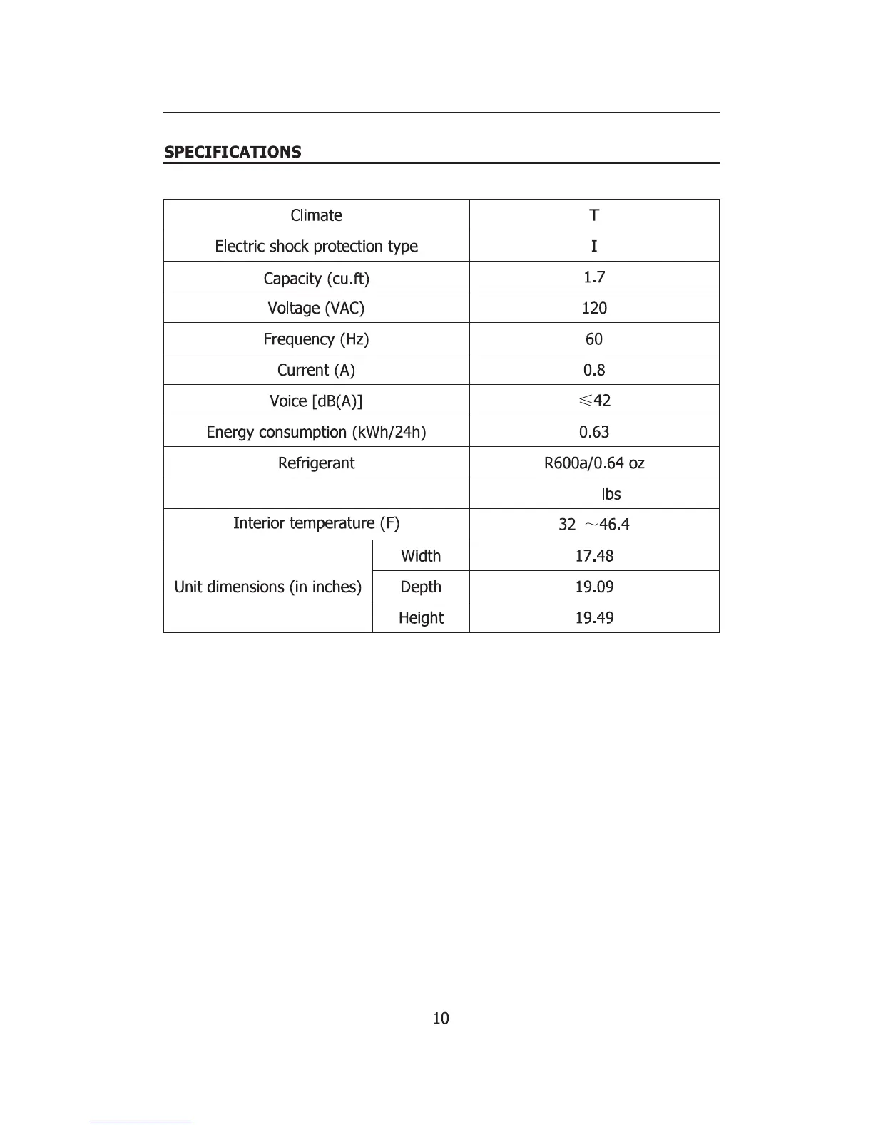 Galanz GL17BK - Refrigerator Technical Specifications