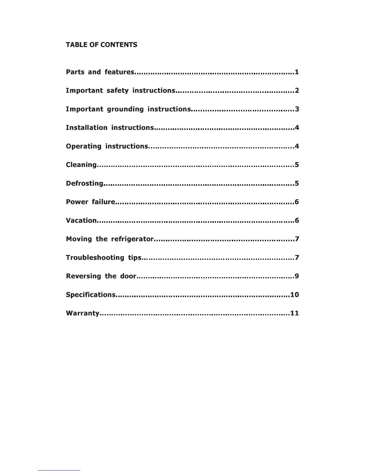 Galanz GL17BK - Table of Contents