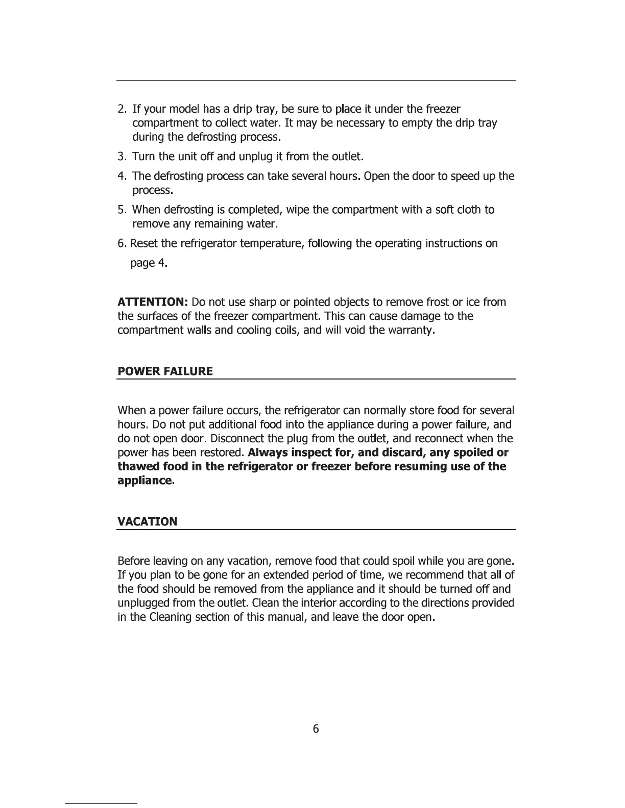 Galanz GL17BK - Refrigerator Power Failure Procedures; Refrigerator Vacation Preparation