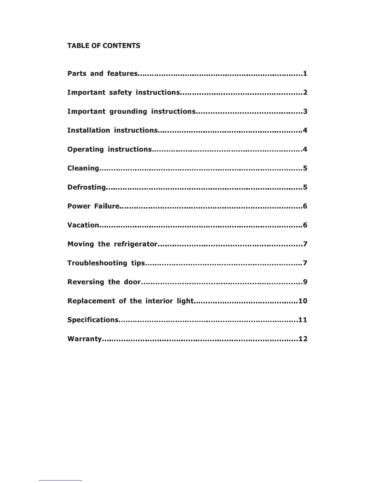 Galanz GL43S5 - Table of Contents