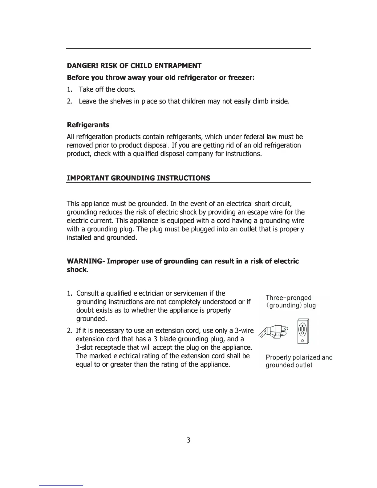 Galanz GL43S5 - Danger: Risk of Child Entrapment; Important Grounding Instructions