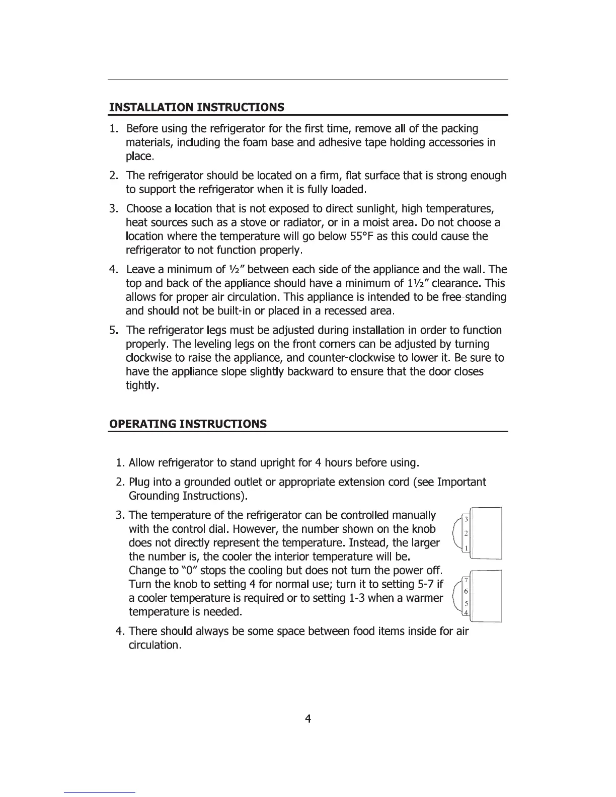 Galanz GL43S5 - Installation Instructions; Operating Instructions