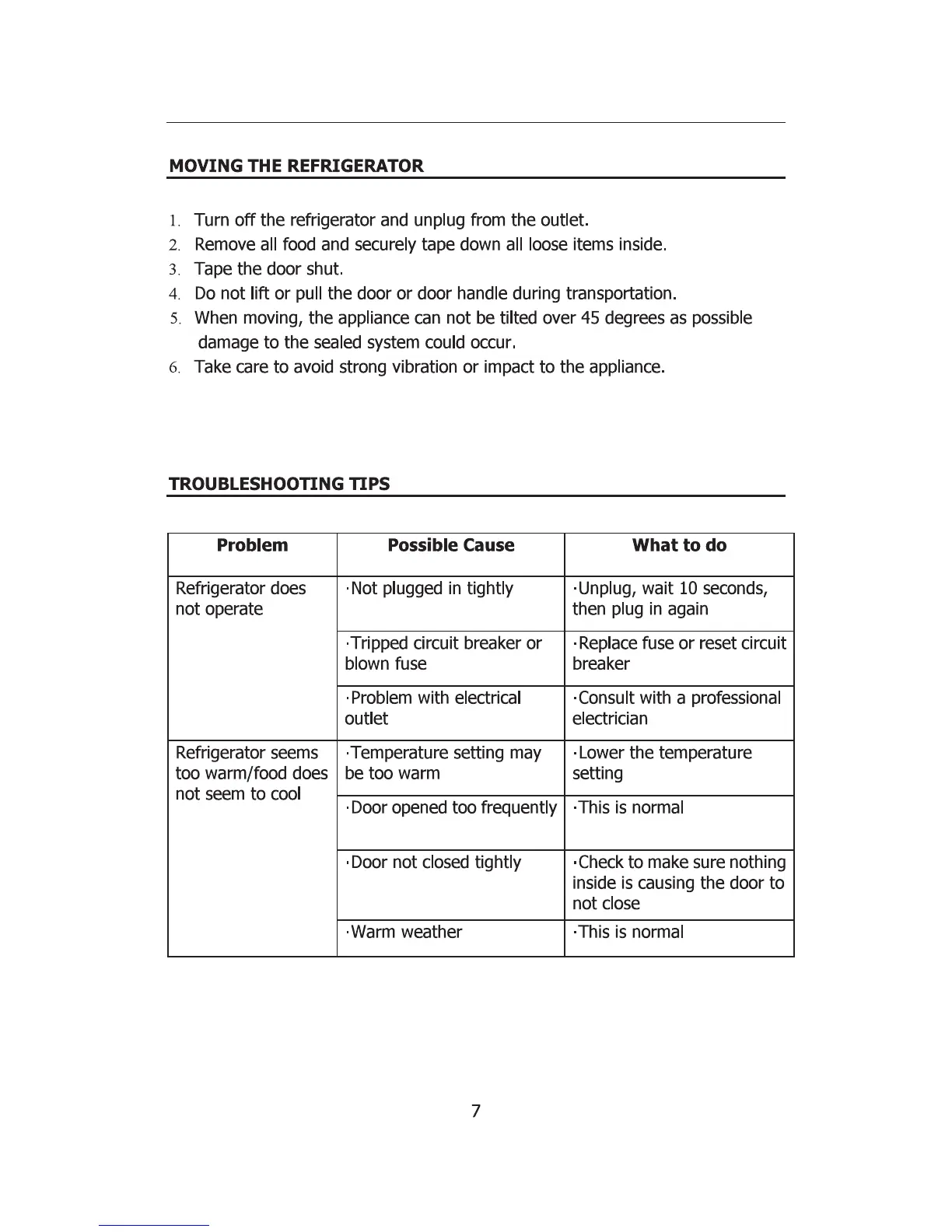 Galanz GL43S5 - Moving the Refrigerator; Troubleshooting Tips