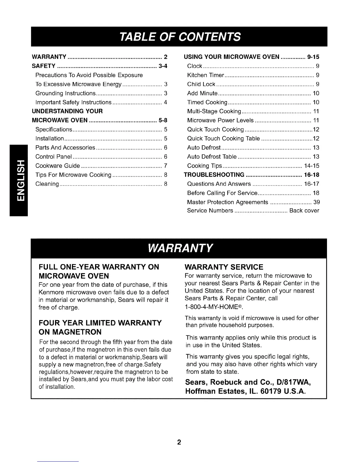 USING YOUR MICROWAVE OVEN ............... 9-15