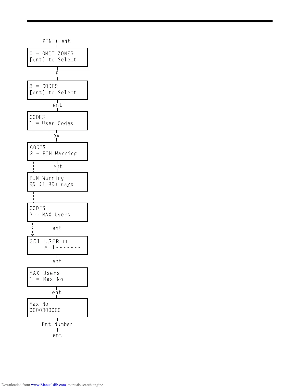 Enter the Codes option and select 3 = MAX Users. Press the ent