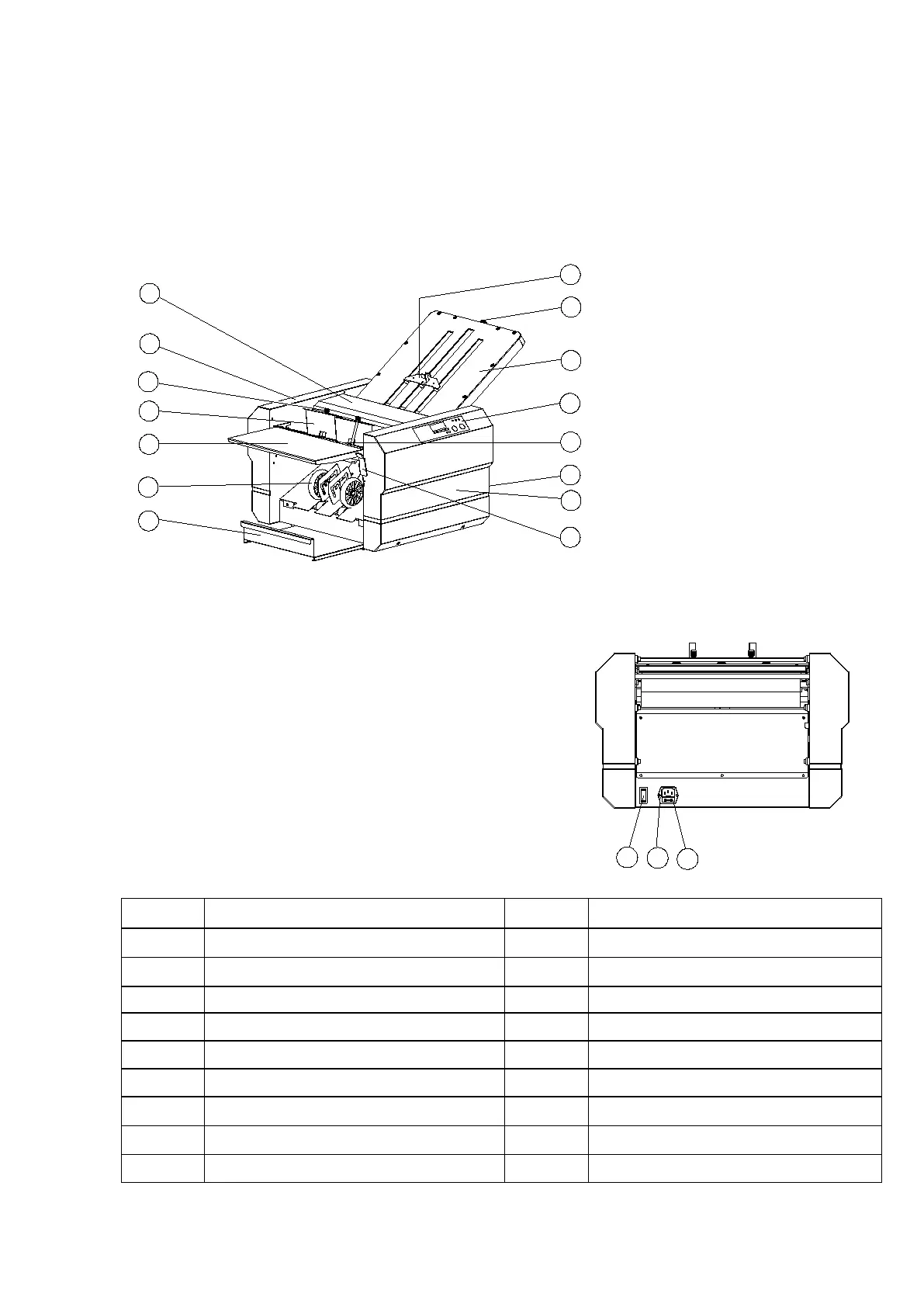 (7) Paper stacking table (16) Power switch