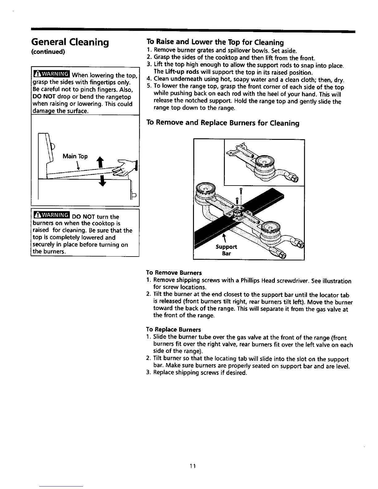 is released (front burners tilt right, rear burners tilt left). Move the burner