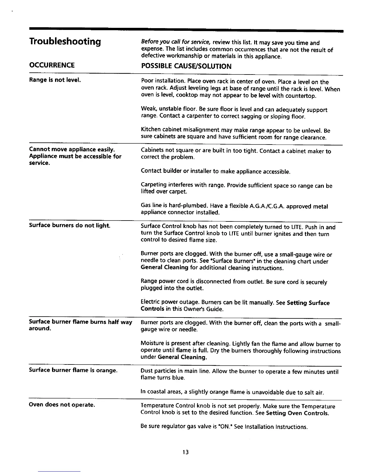 Surface burner flame burns half way Burner ports are clogged. With the burner off, clean the ports with a small-