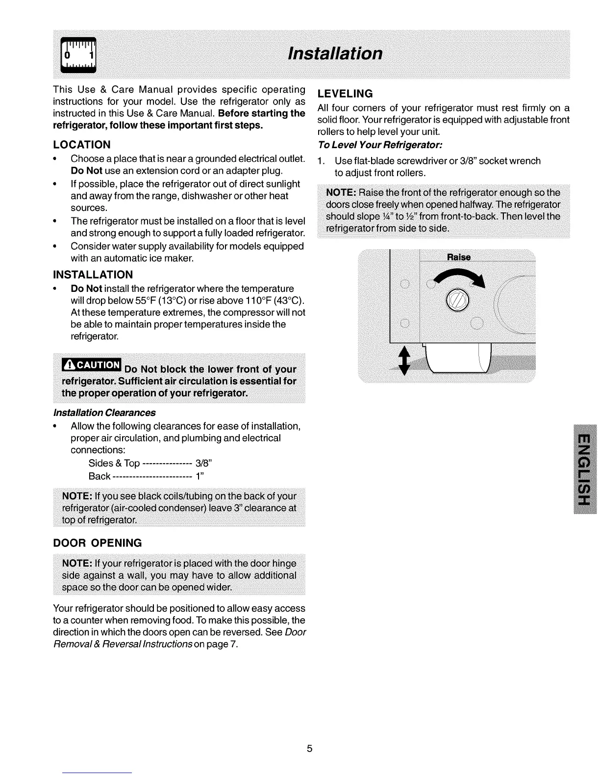 • The refrigerator must be installed on a floor that is level