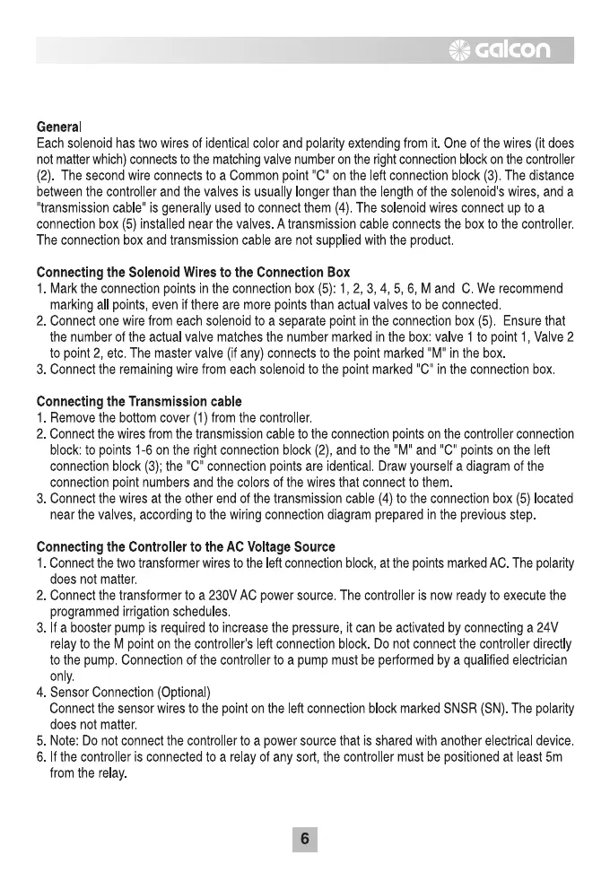 Galcon AC 6S - Connecting Solenoid Wires to the Connection Box; Connecting the Controller to the AC Voltage Source