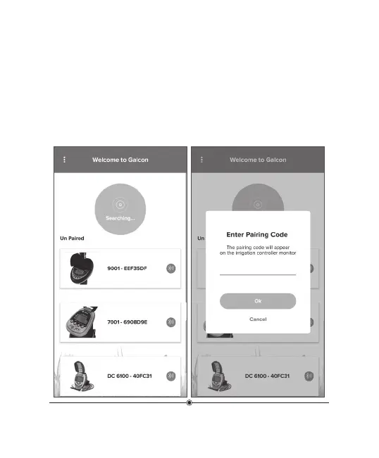 The pairing code will appear on the irrigation