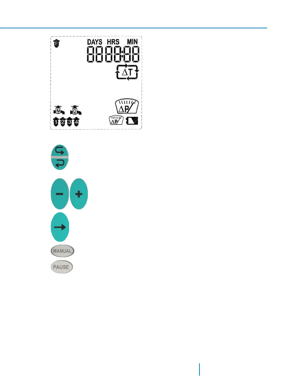 Manual key – used to start or stop a manual back-flushing cycle.