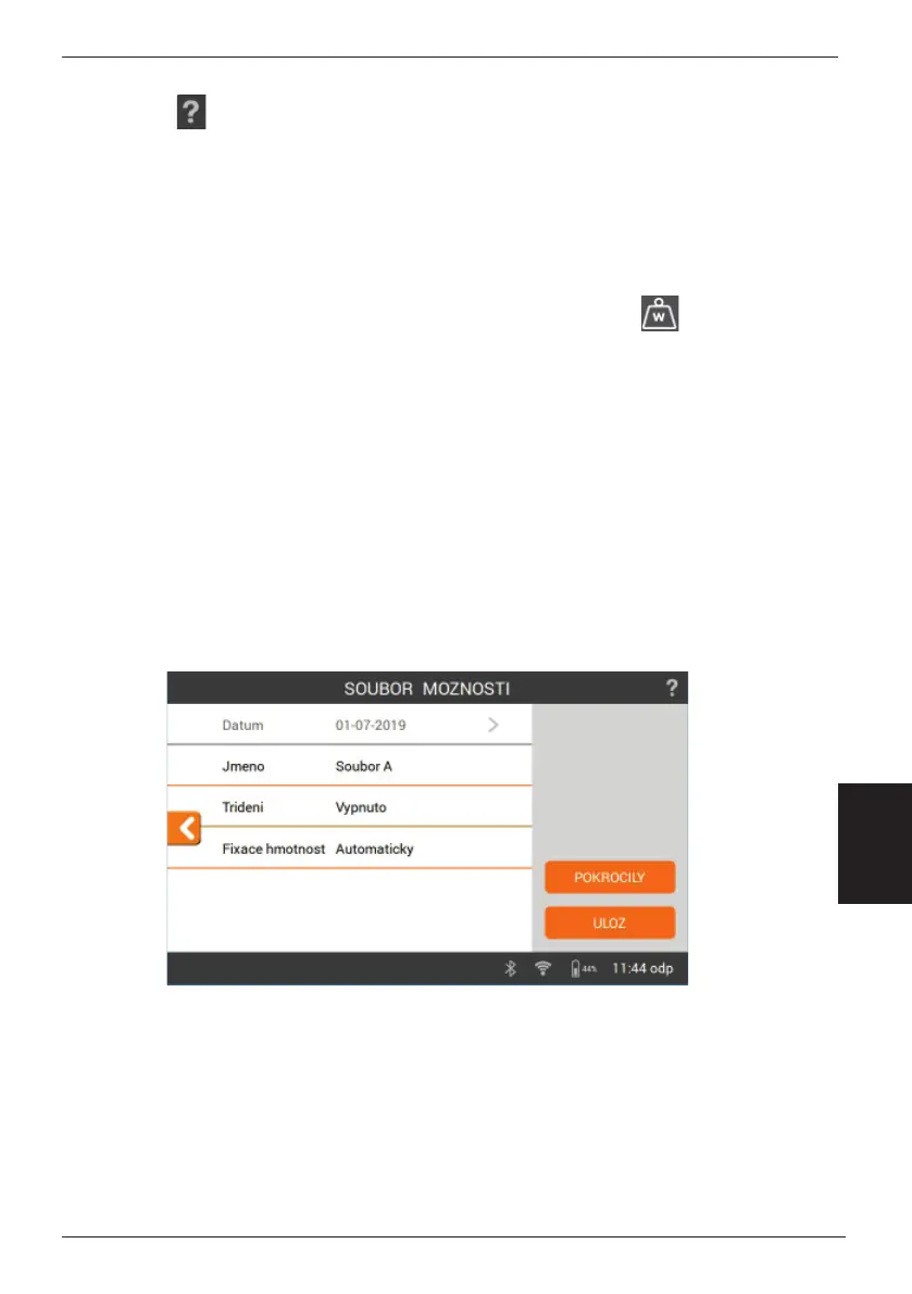Menu pro Možnos souboru vážení se používá ke konfi guraci aktuálního souboru.