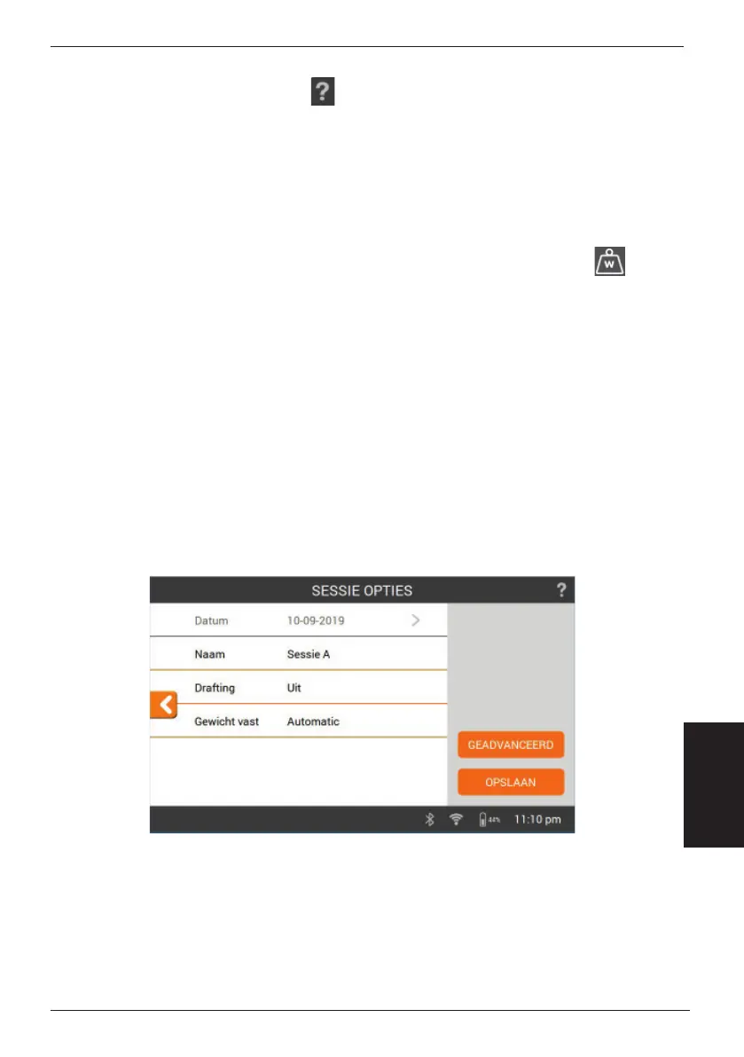 Instellingen) en gaat er boven de Weegknop kort een rood lampje branden.