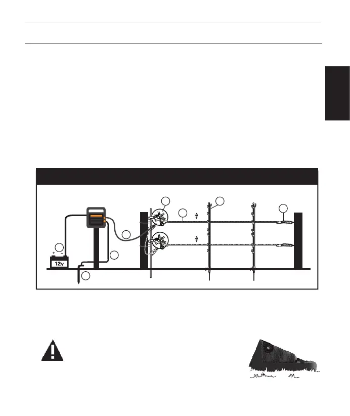 van kinderen. Installeer het schrikdraadapparaat waar er geen gevaar