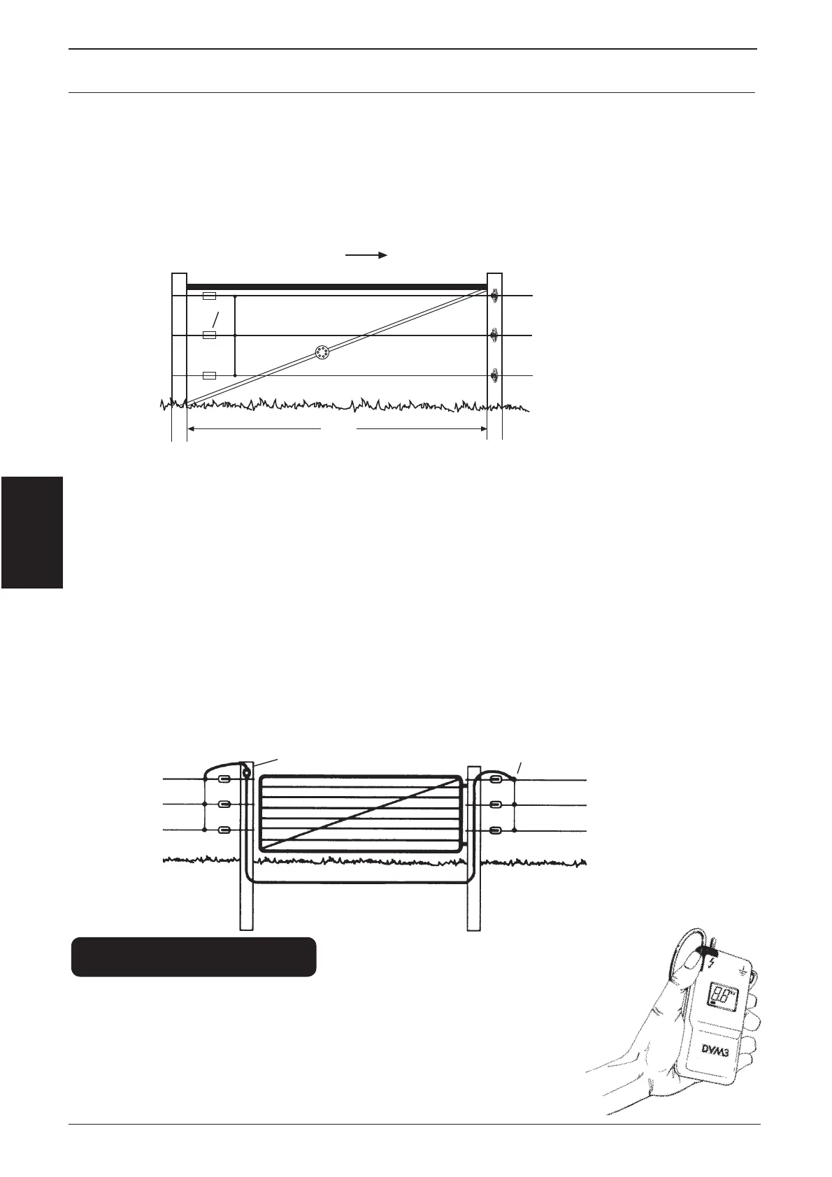 Hochleitung. Benutzen Sie kein elektrifi ziertes Tor um Strom über Einfahrten