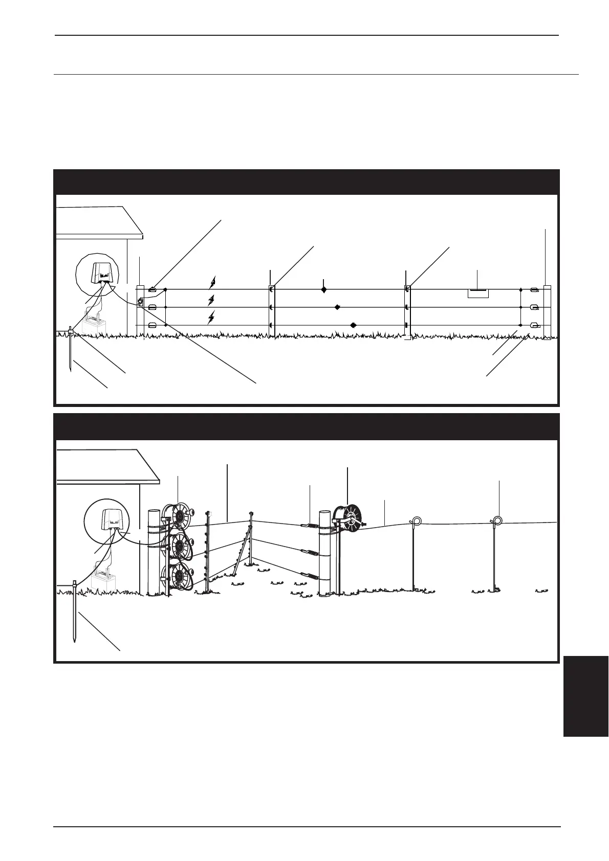 Använd ALDRIG taggtråd. I fl y bara stängsel kan Poly Wire, Poly Tape eller lä tråd
