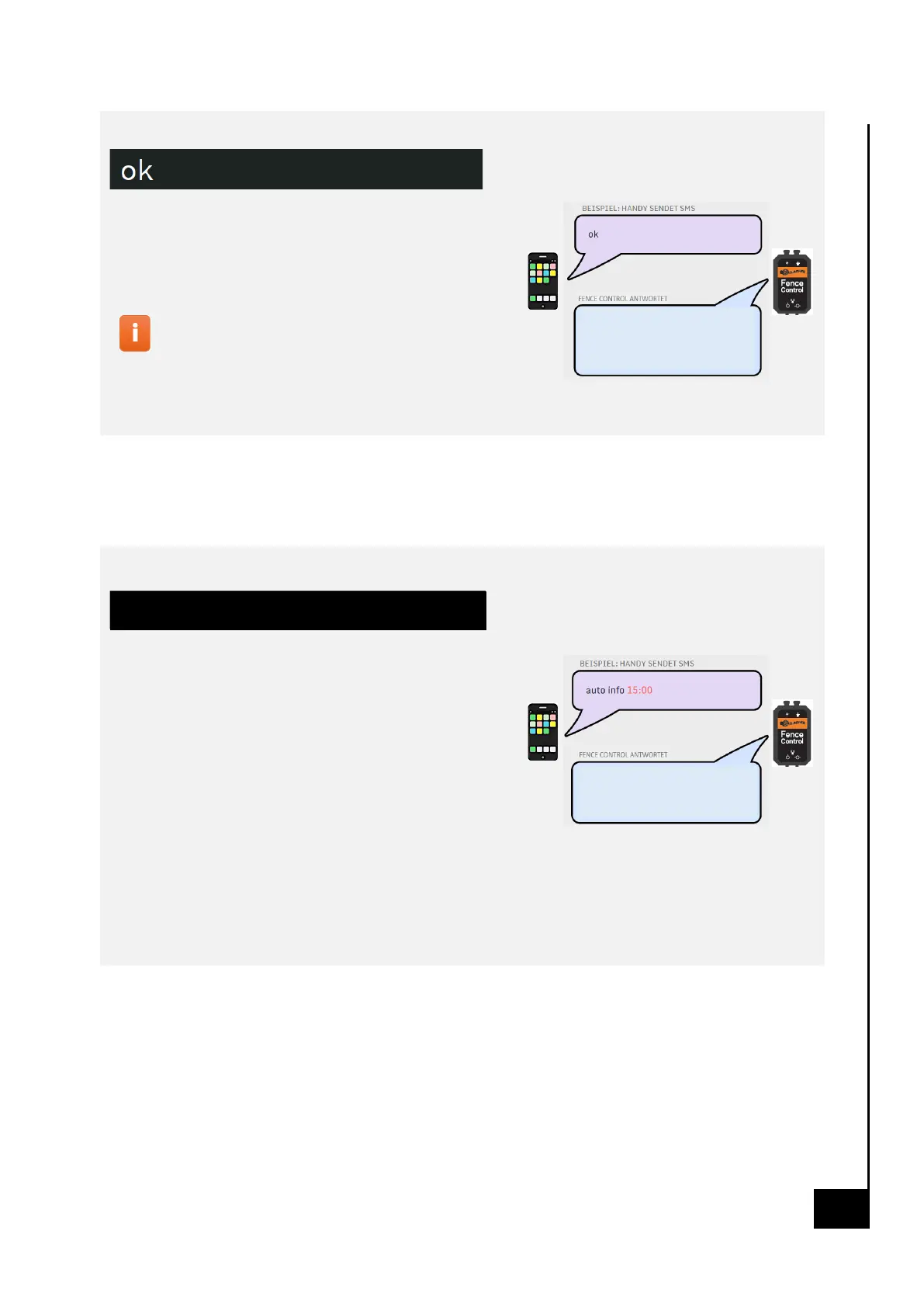 The Fence Control sends an info-SMS daily on <TIME> to the phone number sending this SMS