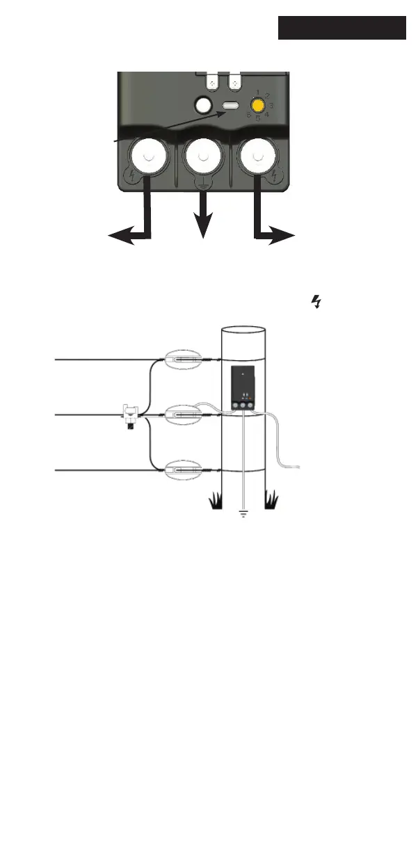 Verbind met de afrastering, schrikdraadapparaat en aardpen.