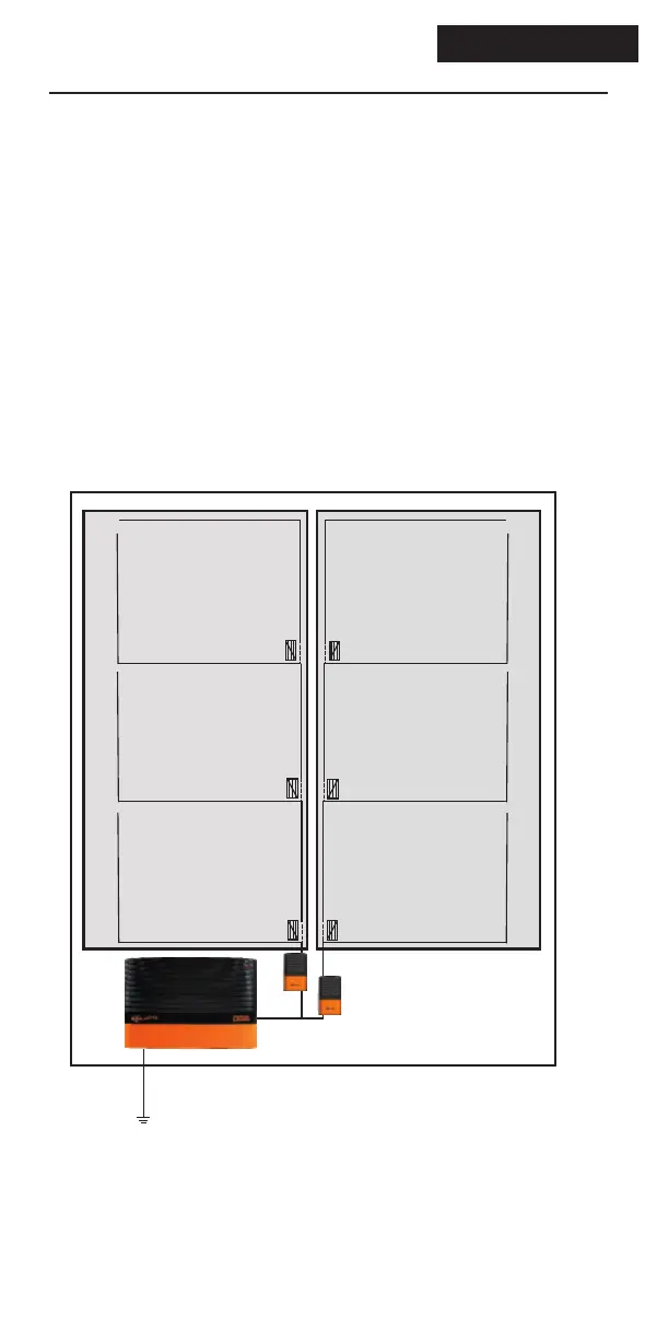 worden geïnstalleerd tussen het schrikdraadapparaat en de zone. Zie